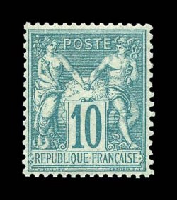 2654 og 68 image#68, 1876 10c Green on greenish, Ty. I, a select mint single, intense bright color and very fresh with detailed impression, exceptionally well centered, full o.g., very lightly hinged, extremely fine; signed Calves and one other, and accompanied by 1998 Roumet certificate (Yvert #65; €1,100). (Image) $800.00