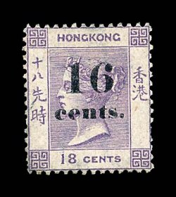2682 ng 29 image#29, 1876 "16/cents." surcharge on 18c Lilac, scarce unused example, strong color, nicely centered, faint horizontal crease, otherwise very fine (S.G. #20; £2,250). (Image) $2,250.00