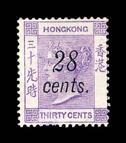 2683 ng 30 image#30, 1876 "28/cents." surcharge on 30c Violet, unused, bright fresh color, owner's handstamp on reverse, tiny closed tear at top right, otherwise a fine example of this scarce surcharge (S.G. #21; £1,300). (Image) $1,250.00