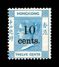 2686 og 33 image#33, 1879 "10/cents." surcharge on 12c Blue, brilliantly fresh color on pristine white paper, full original gum, minor h.r., horizontal crease, fine appearance (S.G. #25a; £1,200). (Image) $800.00