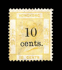 2687 og 34 image#34, 1879 "10/cents." surcharge on 16c Yellow, bright color, part original gum, faint horizontal bend, still fine; a highly collectable example of this rare stamp that is missing from most collections (S.G. #26; £4,000). (Image) $7,500.00