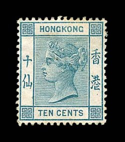 2689 ng 43a image#43a, 1882 10c Blue green, watermarked Crown and "CA", unused, well centered, rich color in the scarce blue green shade, small natural inclusion, light crease, very fine appearance (S.G. #37; £1,800). (Image) $1,800.00