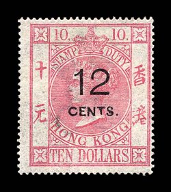2690 og 50 image#50, 1880 "12/CENTS." surcharge on $10.00 Rose, centered to the right as usual, rich fresh color, full original gum, lightly hinged, fine (S.G. #F7; £800). (Image) $800.00