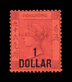 2694 og 63 image#63, 1891 "1/DOLLAR" surcharge in English and Chinese on 96c Violet on red, strong colors, o.g., very fine (S.G. #50; £425). (Image) $375.00