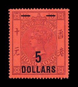 2693 og 60 image#60, 1891 "5/DOLLARS" surcharge on $10.00 Violet on red, well centered and fresh, full o.g., lightly hinged, very fine (S.G. #F9; £300). (Image) $325.00