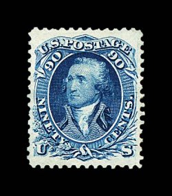 1165 ng 111 image#111, 90c Blue re-issue, a handsome unused example of this re-issue rarity, with outstanding centering amid large margins, deep rich re-issue color and impression, extremely fine; only 317 issued; 1990 PF certificate. (Image) $3,900.00