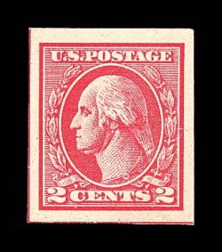 190 og 534B image#534B, 2c Carmine offset imperforate, Ty. VII, impressive single with four very large margins being taken from a center line block showing portions of the guide lines at left and bottom, strong rich color on bright paper, o.g., only the barest trace of hinging, if at all, an extremely fine example of this rare 20th century stamp; 1995 APS certificate for a center line block of four, this being the top right stamp. (Image) $2,100.00