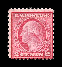 191 nh 539 image#539, 2c Carmine rose coil waste, Ty. II, perf. 11x10, brilliant "post office" fresh mint example of this rare and difficult stamp, deep luxuriant color and crisp impression, centered to the bottom right as often found as this issue is notoriously poorly centered, pristine o.g., never hinged, fine; 1966 PF certificate and photocopy of a 1992 PF certificate, both for the block of four from which this was taken, this being the bottom left stamp. (Image) $4,000.00