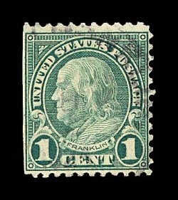193 O 594 image#594, 1c Green coil waste, a very presentable example of one of the most difficult stamps of the 20th century, especially when it is considered that fewer than 100 examples of this stamp have been confirmed, better centered than most with large margins at top and bottom and clear of the design on both sides, perforations at left trimmed away, unusually lightly cancelled, fine appearance; a stamp that is missing in even the most advanced United States collections; 1954 PF certificate. (Image) $6,750.00