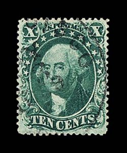 30 O 32 image#32, 10c Green, Ty. II, precisely centered used example within large margins, with none of the perforations impinging on the design, fresh rich color and exceptionally sharp impression, attractive black c.d.s. postmark, extremely fine and quite handsome; 1999 PF certificate. (Image) $275.00