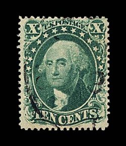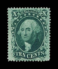 33 og 35 image#35, 10c Green, Ty. V, remarkably well centered within large margins, sumptuously rich color and a strong impression, brilliantly fresh, full o.g., very lightly hinged, extremely fine and choice; 1983 PF certificate. (Image) $275.00
