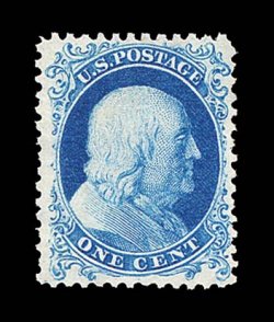 38 og 40 image#40, 1c Bright blue reprint, without gum as issued, wonderfully well centered within large margins, gorgeous intense color on fresh white paper and an impression that would rival any proof, extremely fine for this; 1996 PF certificate. (Image) $625.00
