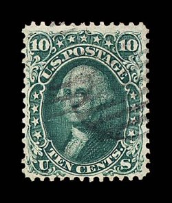 43 O 62B image#62B, 10c Dark green "August", lovely quality used example of this always difficult stamp, wonderfully well centered and margined, especially considering how poorly centered and tightly margined this stamp can come, deep luxuriant color and a well detailed impression, light black circular grid cancels, extremely fine. (Image) $1,250.00