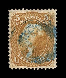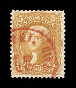 47 O 67a image#67a, 5c Brown yellow, handsome used example, quite well centered amid considerably larger margins than typically associated with any of the various Five Cent 1861 shades, especially fresh and luxuriant color in the unmistakable brown yellow shade on bright paper, plus particularly attractive red packet c.d.s., very fine and choice copy of an elusive stamp; 1990 PF certificate as "generic" #67 5c Buff. (Image) $940.00