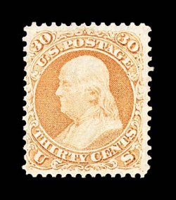 51 ng 71 image#71, 30c Orange, handsome unused single, being exceedingly well centered within large margins which are most uncharacteristic of this tightly spaced stamp, exceptionally fresh on crisp bright paper with strong color and impression, extremely fine. (Image) $800.00