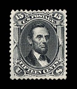 54 ng 77 image#77, 15c Black, handsome unused example, particularly well centered and margined for this considering how poorly centered this value can come, strong rich color, very fine and a very difficult stamp to find either unused or mint; 1996 PSE certificate. (Image) $1,100.00