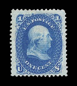 44 og 63 image#63, 1c Blue, premium mint example which possesses far larger margins than typically found, and being especially well centered within them, fresh bright color and a crisp impression, full o.g., lightly hinged, extremely fine and a scarce stamp in this select quality; 1994 PF certificate. (Image) $325.00