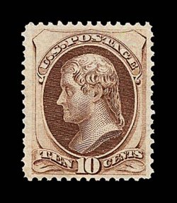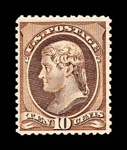 116 nh 209 image#209, 10c Brown, "post office" fresh mint single, well centered amid large margins, strong rich color, o.g., never hinged, very fine and choice. (Image) $425.00