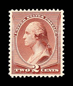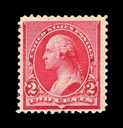 120 og 220c image#220c, 2c Carmine, cap on both "2's" variety, well centered within unusually large margins, deep luxuriant color, o.g., extremely fine; a rather scarce variety in mint condition. (Image) $625.00