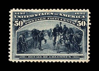 122 og 240 image#240, 50c Columbian, exceedingly well centered, deep intense color and impression on fresh paper, full o.g. but slightly disturbed, extremely fine; 1989 PF certificate. (Image) $600.00