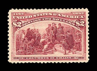 124 og 242 image#242, $2.00 Columbian, well centered within uncharacteristically large margins, beautiful rich color and a sharp impression, disturbed o.g., extremely fine; 1996 PF certificate. (Image) $1,300.00
