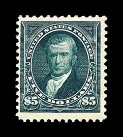 139 og 278 image#278, $5.00 Dark green, attractive appearing mint single, well centered with excellent color, o.g., couple truly tiny thin specks and certificate mentions slight gum stain which we are hard pressed to find, very fine appearance; 1997 PF certificate. (Image) $2,300.00