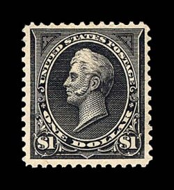 132 og 261A image#261A, $1.00 Black, Ty. II, exceptionally well centered within uncharacteristically large margins, deep luxuriant color and a razor-sharp impression, o.g., relatively lightly hinged, extremely fine for this truly rare stamp; 1996 PF certificate. (Image) $2,300.00