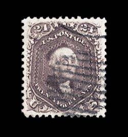 197 O 70 image#70, 24c Red lilac, a lovely used single, possessing outstanding rich color and impression, and being exceptionally well centered within much larger margins than normally encountered on the Twenty-Four Cent value, neat portion of large Boston "Paid" in grid cancel, extremely fine; 1996 PF certificate. (Image) $215.00
