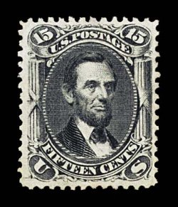 221 ng 77 image#77, 15c Black, an incredibly well centered unused example of this perennially difficult stamp, possessing margins of extraordinary size and being perfectly centered within them, rich color and detailed impression, an extremely fine example of a terribly elusive unused 19th century stamp; 2000 PF certificate. (Image) $1,100.00