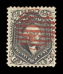 225 O 78 var. image#78 var., 24c Dark lilac, select used example of this seldom offered shade, strong distinctive color, extraordinarily well centered and margined, attractively accented by red rimless grill pmk., extremely fine; 1997 PF certificate specifically identifying it as the dark lilac shade. (Image) $190.00