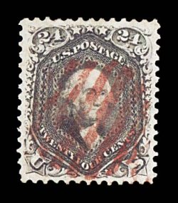 226 O 78a image#78a, 24c Grayish lilac, magnificently centered amid margins that are quite enormous for this issue, far more intense color than typically encountered, with a strong impression as well, beautifully postmarked with light red grid cancel, extremely fine; a superb used gem for the perfectionist; 1998 PSE certificate. (Image) $165.00