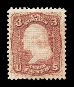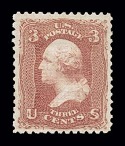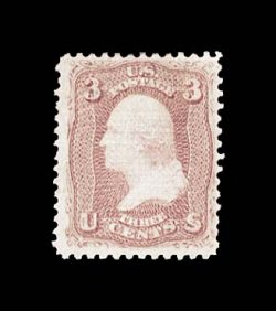 238 og 88 image#88, 3c Rose, "E" grill, a magnificent gem mint example of this surprisingly difficult value, being flawlessly centered amid lavishly large and perfectly balanced margins, sumptuously rich color and an especially clean impression, full original gum which has been lightly hinged once, extremely fine; an incredibly rare stamp in this outstanding quality; 2000 PSE certificate. (Image) $900.00