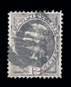 361 O 140 image#140, 12c Dull violet with grill, an exceedingly choice used example of this rare grilled stamp, possessing extravagantly large margins which are most uncharacteristic of this stamp, quite well centered as well, strong color, plus well impressed grill for this value, central blue quartered cancel, extremely fine overall; a very rare grilled Bank Note, not often encountered in this premium condition; 1998 PF certificate. (Image) $3,050.00