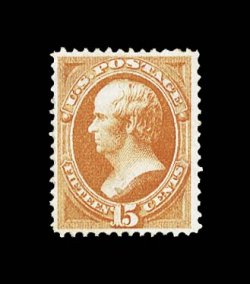 364 og 141 image#141, 15c Orange with grill, a very rare mint example of this grilled stamp, marvelously fresh color, far better centering than most of the few mint examples we have seen, o.g., very fine for this; among the few existing sound original gum examples; 2004 PF certificate. (Image) $7,500.00