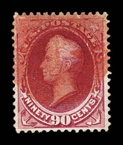 366 O 144 image#144, 90c Carmine with grill, extraordinary used example, precisely centered within large even margins that would be impressive for any Bank Note stamp, but even more so for this difficult grilled high value, wonderfully rich and radiant color, impressive and scarce brilliant red cancel, plus an unusually clear and nearly complete grill impression which is seldom found on this value, extremely fine; an incredibly difficult stamp to find in such exceptional quality; 1998 PF certificate. (Image) $1,925.00