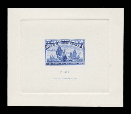 506 P 233P1 image#233, 4c Columbian, large die proof, on India die sunk on card measuring 97x84mm, especially fresh with vibrant color, extremely fine. (Image) $700.00