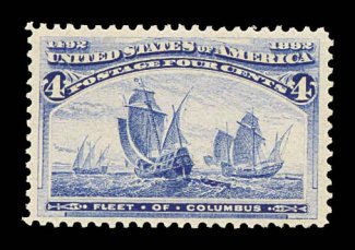 512 nh 233 image#233, 4c Columbian, pristine mint example, exceptionally well centered within large balanced margins, brilliantly fresh, rich color and impression, immaculate o.g., n.h., extremely fine; 1990 PF certificate. (Image) $190.00