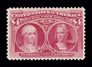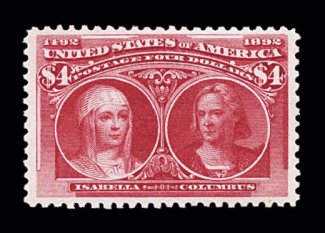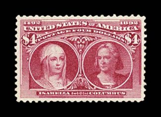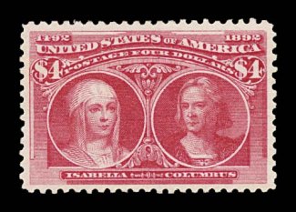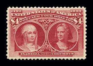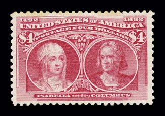 578 og 244a image#244a, $4.00 Columbian, rose carmine shade, nicely centered within large margins, bright color, o.g., very fine; 1996 PF certificate (Image) $2,750.00