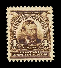 682 nh 303 image#303, 4c Brown, a wonderfully choice mint single, boasting flawless centering within extravagantly large and perfectly balanced margins, plus its color is especially rich and luxuriant, o.g., n.h., extremely fine gem; 1997 PF certificate. (Image) $140.00