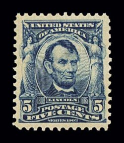 684 nh 304 image#304, 5c Blue, select crisp mint single, exceedingly well centered within large balanced margins, sumptuously rich color in an especially deep shade, prooflike impression on bright paper, o.g., n.h., extremely fine. (Image) $140.00