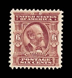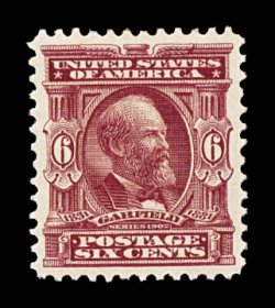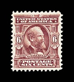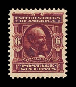 690 og 305 image#305, 6c Claret, flawlessly centered amid large balanced margins, striking rich color and a razor-sharp impression on immaculate white paper, o.g., very lightly hinged, an extremely fine gem. (Image) $72.50