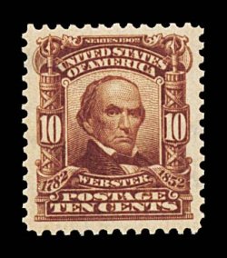 693 og 307 image#307, 10c Pale red brown, exceptionally well centered within extravagantly large margins, rich fresh color, o.g., very lightly hinged, extremely fine; 1996 PF certificate. (Image) $70.00