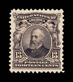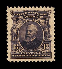 695 nh 308 image#308, 13c Purple black, a stunning mint example of unbelievably large proportions, possessing enormous "boardwalk" margins all around, the likes of which we have never seen, and even more remarkable is that this stamp is perfectly centered within these fantastic margins, remarkable color and freshness, pristine o.g., n.h., superb; we doubt a finer copy exists; 1990 PF and 2004 PSE certificates ex-Morris. (Image) $110.00