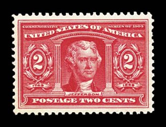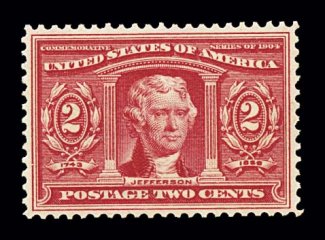 724 nh 324 image#324, 2c Louisiana Purchase, select mint example, brilliantly fresh and with radiant color, marvelously well centered within extra-large margins that are rarely found on any values of this issue, pristine o.g., n.h., extremely fine. (Image) $60.00