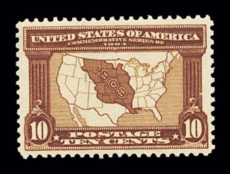 730 nh 327 image#327, 10c Louisiana Purchase, gem mint example that is extraordinarily well centered within extravagantly large margins which are most uncommon on this value, rich luxuriant color and an especially strong impression, unblemished o.g., never hinged, extremely fine and most impressive; 1993 PF and 2001 PSE certificates. (Image) $375.00