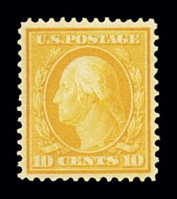 734 nh 338 image#338, 10c Yellow, excellent centering within large margins, brilliant color, o.g., n.h., extremely fine and quite choice; 1999 PF certificate. (Image) $150.00