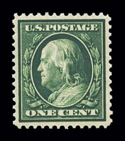 754 nh 357 image#357, 1c Green on bluish paper, an incredibly choice mint single, being marvelously well centered within large and perfectly balanced margins, lovely rich color, pristine o.g., never hinged, extremely fine; actually a very scarce stamp in this gem quality; 1991 PF certificate. (Image) $190.00