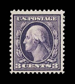 758 og 359 image#359, 3c Deep violet on bluish paper, unusually rich color and sharp impression, well centered within lavishly large margins, clean o.g., lightly hinged, single perf. tip added at top right, extremely fine appearance; clear 1964 PF certificate for a block of four, this being the bottom left stamp. (Image) $2,000.00