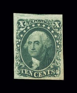67 ng 14 image#14, 10c Green, Ty. II, a handsome unused single that possesses large even margins all around, rich luxuriant color and a crisp detailed impression, extremely fine; an especially rare stamp in this premium quality; 1991 PF certificate for a horizontal pair, this being the right stamp. (Image) $2,000.00