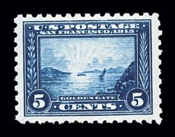 802 nh 403 image#403, 5c Panama-Pacific, perf. 10, excellent centering within wide margins, brilliantly fresh color and paper, o.g., n.h., extremely fine; 1995 PF certificate. (Image) $375.00